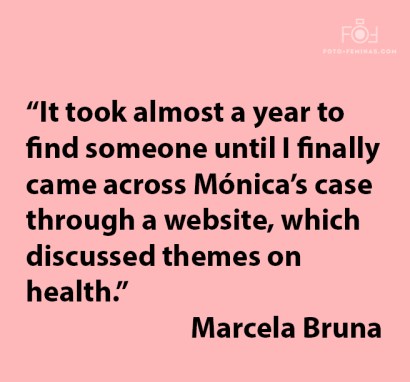 Esta idea me llevó a buscar a una mujer que estuviera pasando por esta situación. Me tomó bastante tiempo encontrarla, casi un año, hasta que a través de un sitio de internet, en el que se discuten temas de salud, di con el caso de Mónica. Le conté mi idea y ella aceptó que la acompañara durante el proceso. Cuando la conocí ya le habían diagnosticado la inviabilidad de su embarazo gemelar, ella sintiéndose con la obligación legal decidió llevar su embarazo a término, aún sabiendo que sus hijas morirían al nacer.