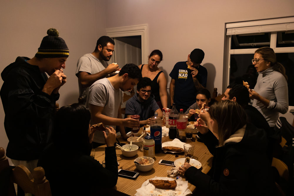 Eleven strangers spread across five bedrooms. Ten Brazilians and one Guatemalan, all but one newly arrived immigrants, who had had no previous contact with one another before setting foot on that house – and before being confined together. It felt like we were the subjects of a social experiment – except there was no one conducting it. Once Covid-19 came upon us, we were no longer allowed to leave for anything other than going to the supermarket. Suddenly, the place I only expected to go back to for eating, showering and sleeping, became my cloister. The sole table in the house, used for eating, studying and working, was never empty – and never silent. Except for a few lucky days, we had to wait in line for cooking and taking a shower; and, in some very unlucky ones, we might even have to wait in line for using the toilet. It was a hard couple of months. During this time, I started photographing everyday life at 177 Clonliffe Road, to try and make sense of my experience. But as the weeks of confinement went by, we went from sharing a house to living together. On Easter morning, Eduardo and Everton got chocolates for everyone in the house. For birthdays, we would get a cake and a card, signed by “your Irish-Brazilian family”. When June finally came, we didn’t skip the traditional Festa Junina: we improvised on costumes and decoration, but the typical food was there. And on almost every Sunday we would have lunch together, like any other ordinary Brazilian family. Although most of us have left 177, Clonliffe Road, we do our best to stay in touch. And as we recollect our time together, the shared memories, the ones we kept, are those of mutual respect and support.