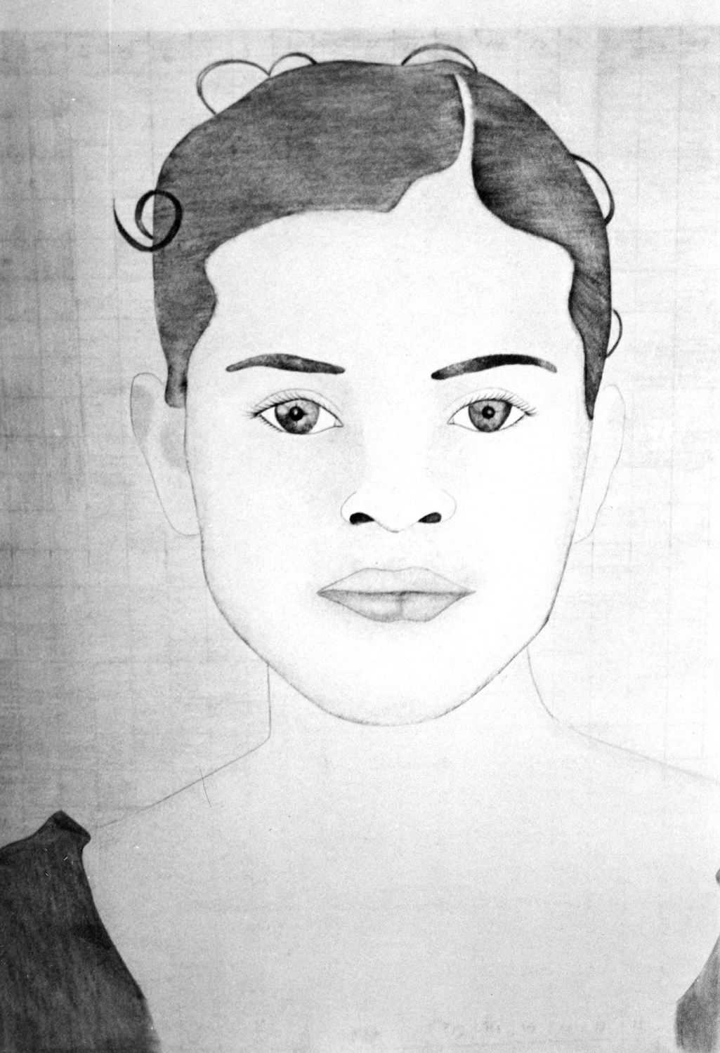 Police sketch of Neyra Cervantes, based on the memory of her mother. Disappeared on May 13 of 2003, at age 20 years old. From the series, El acto de extrañar ©Mayra Martell