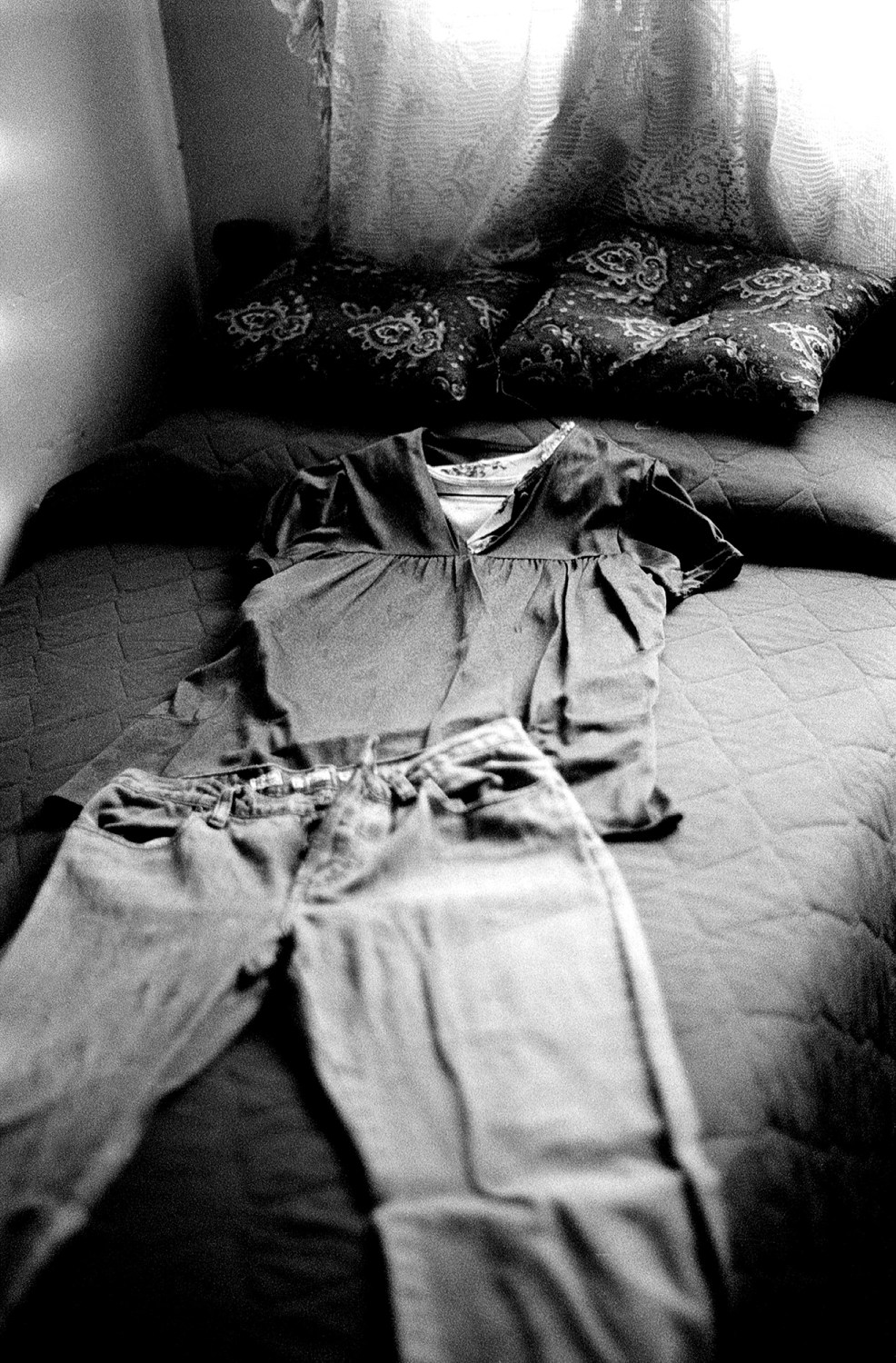 Erika’s clothes. Her mother put it there, when I  asked how tall was her daughter. 19 years old. Disappeared on December 11th, 2000. From the series, El acto de extrañar ©Mayra Martell