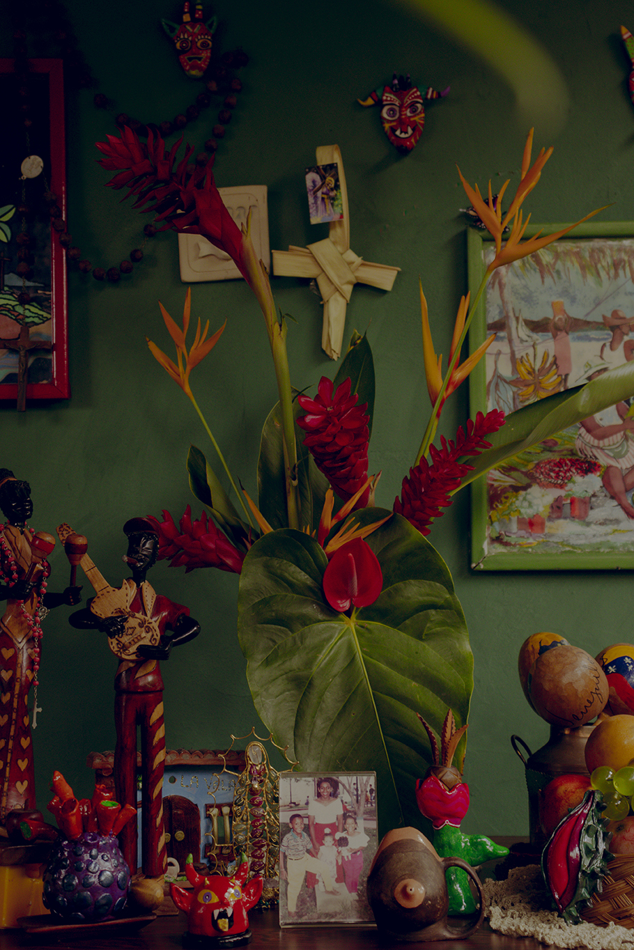 In the process of extracting the essence of culture and its emblematic elements, the textures, nuances, and contrasts of the fauna and flora of the Aragua region are revealed, as well as its imposing coastline and cacao plantations. The vibrant presence of the color red, the cultural heritages, and finally, the deities and religious beliefs all emerge. To explore what belongs to us with admiration and respect becomes an invitation to question, to observe with curiosity, soaking ourselves deeply enough to feel part of it.