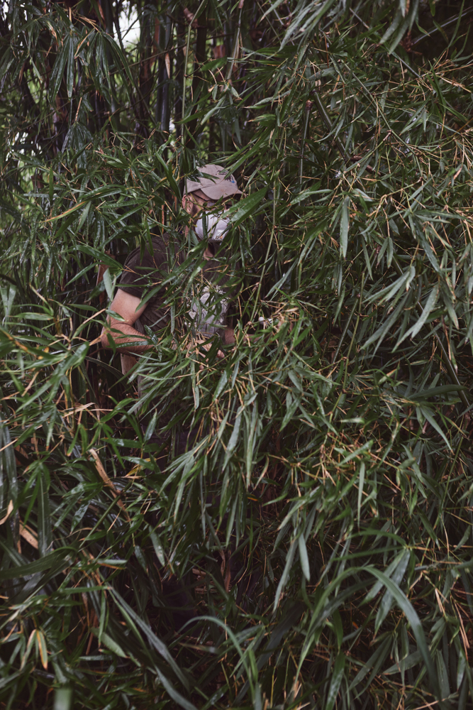 We stopped the truck at a police station in San Gabriel do Oeste, Mato Grosso. It was raining. Scott goes to the side of the road to cut a bunch of canes to feed Mara. ©Sofia Lopez Mañan