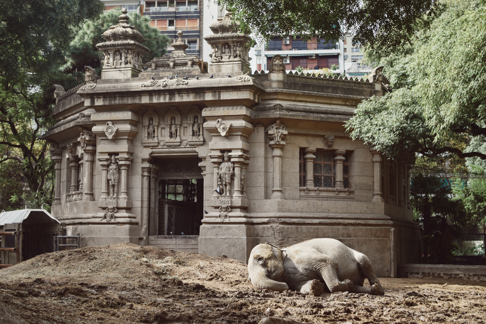 Mara prepares for her daily nap in her outside enclosure at the Buenos Aires Ecopark. Mara is a 54 year old Asian elephant that was born in India and lived most of her life in captivity. When the Rodas Circus went bankrupt in 1995 she was taken to the former zoo of Buenos Aires, now Ecoparque, where she lived with two african elephants that are still there.The former zoo is one of the oldest original Victorian zoos in the world. The elephants enclosure known as the Hindu temple of Elephants was built in 1904 as a replica of the Hindu Temple of Elephants in Bombay. ©Sofia Lopez Mañan