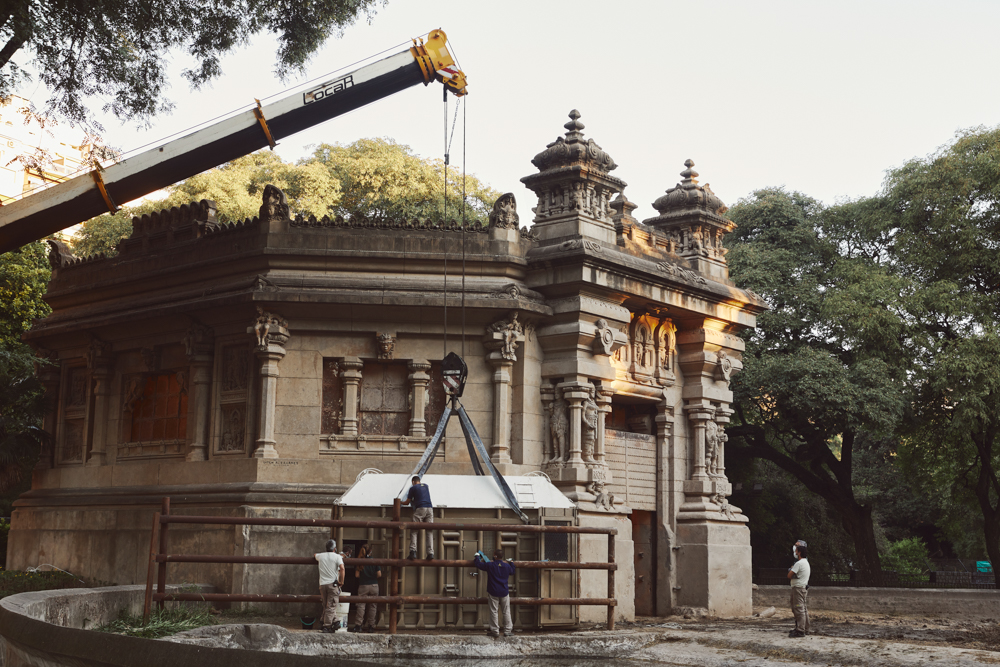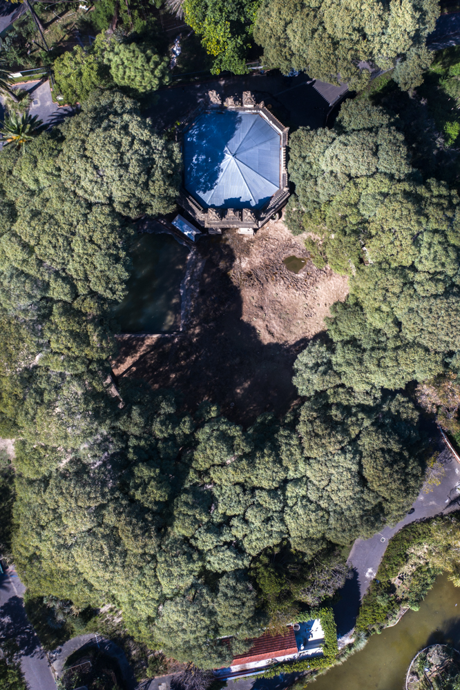 An aerial view of the elephants enclosure in the Buenos Aires Ecopark known as; Hindu Temple of Elephants. The site was built in 1904 and is a copy of a Hindu Temple in Bombay, India. ©Sofia Lopez Mañan